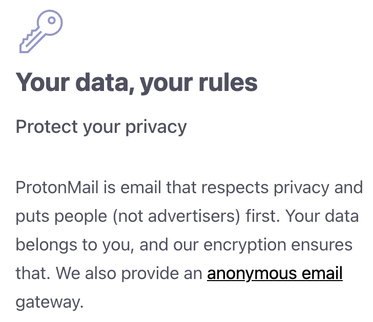 Si on consulte le site web de ProtonMail sur archive.org, tel qu’il se présentait le 31 août 2021, on peut voir exactement ce qui était promis.